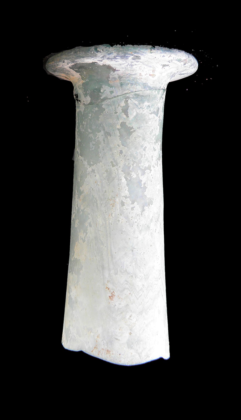 Largo: 10 cm.; Diámetro en la punta: 0,8 cm.; Diámetro en la base: 4,5 cm.; Grueso: 0,16cm.