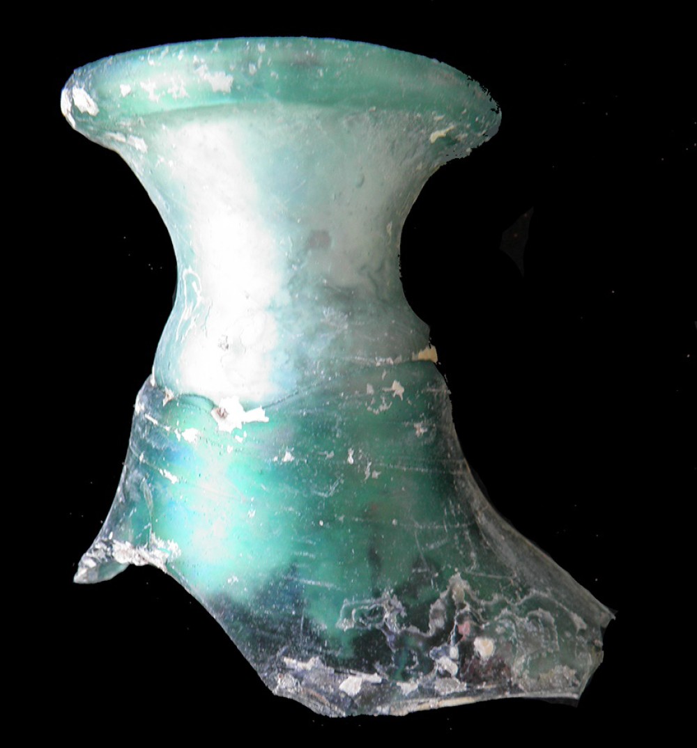 Alto: 4,6 cm.; Diámetro de boca: 2,3 cm.; Diámetro medio de cuello: 1,5 cm.; Grueso: 0,07 cm.