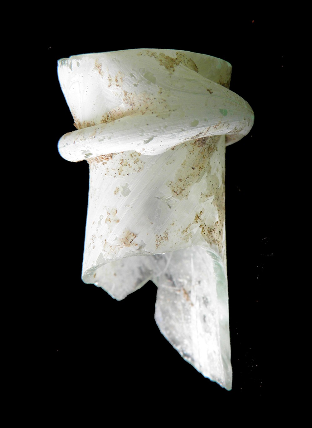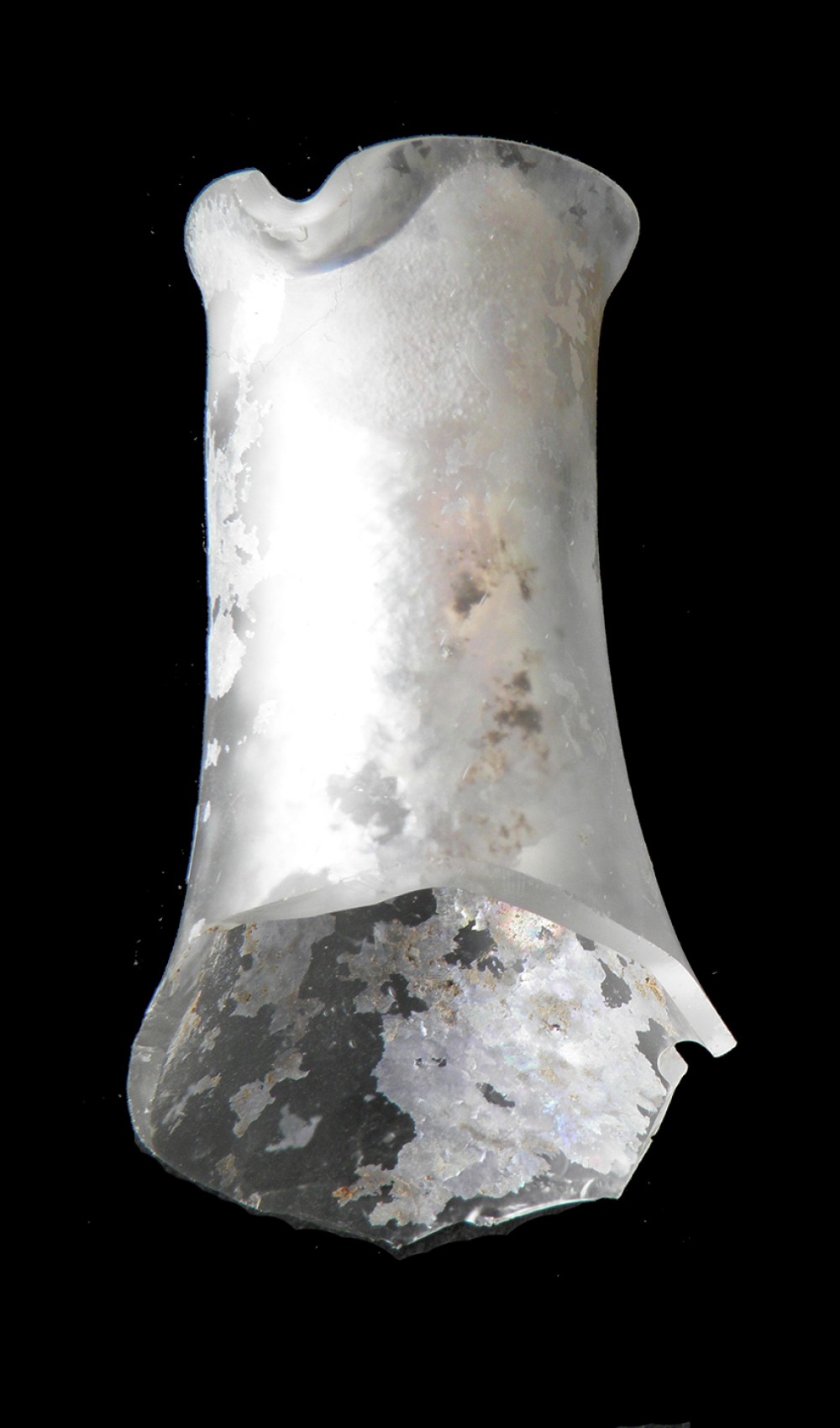 Alto: 3,7 cm.; Diámetro de boca: 1,8 cm.; Diámetro de cuello: 1,5 cm.; Grueso: 0,01 cm.