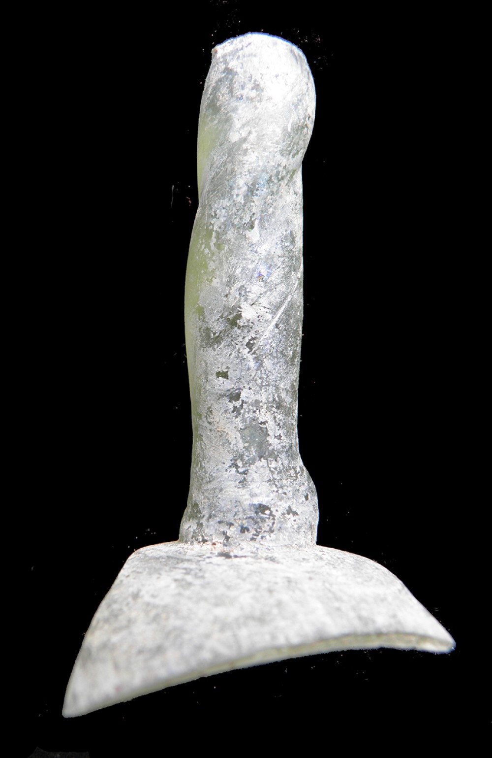 Altura: 7,3 cm.; Anchura: 3,5 cm.; Grueso: 0,34 cm.; Diámetro del vástago macizo: 1,5 cm.