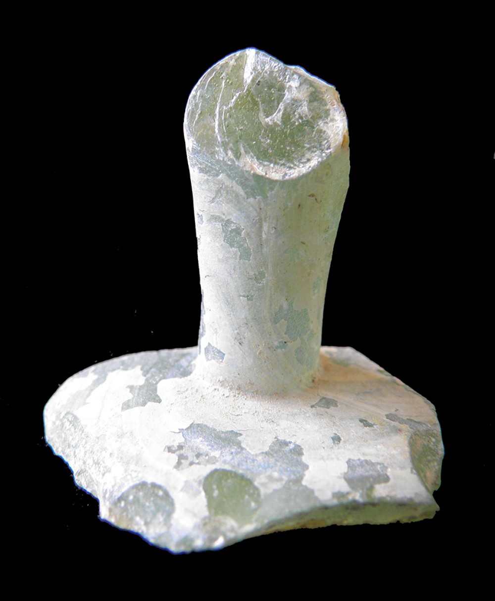Alto: 4,6 cm.; Diámetro de boca: 2,3 cm.; Diámetro medio de cuello: 1,5 cm.; Grueso: 0,07 cm.