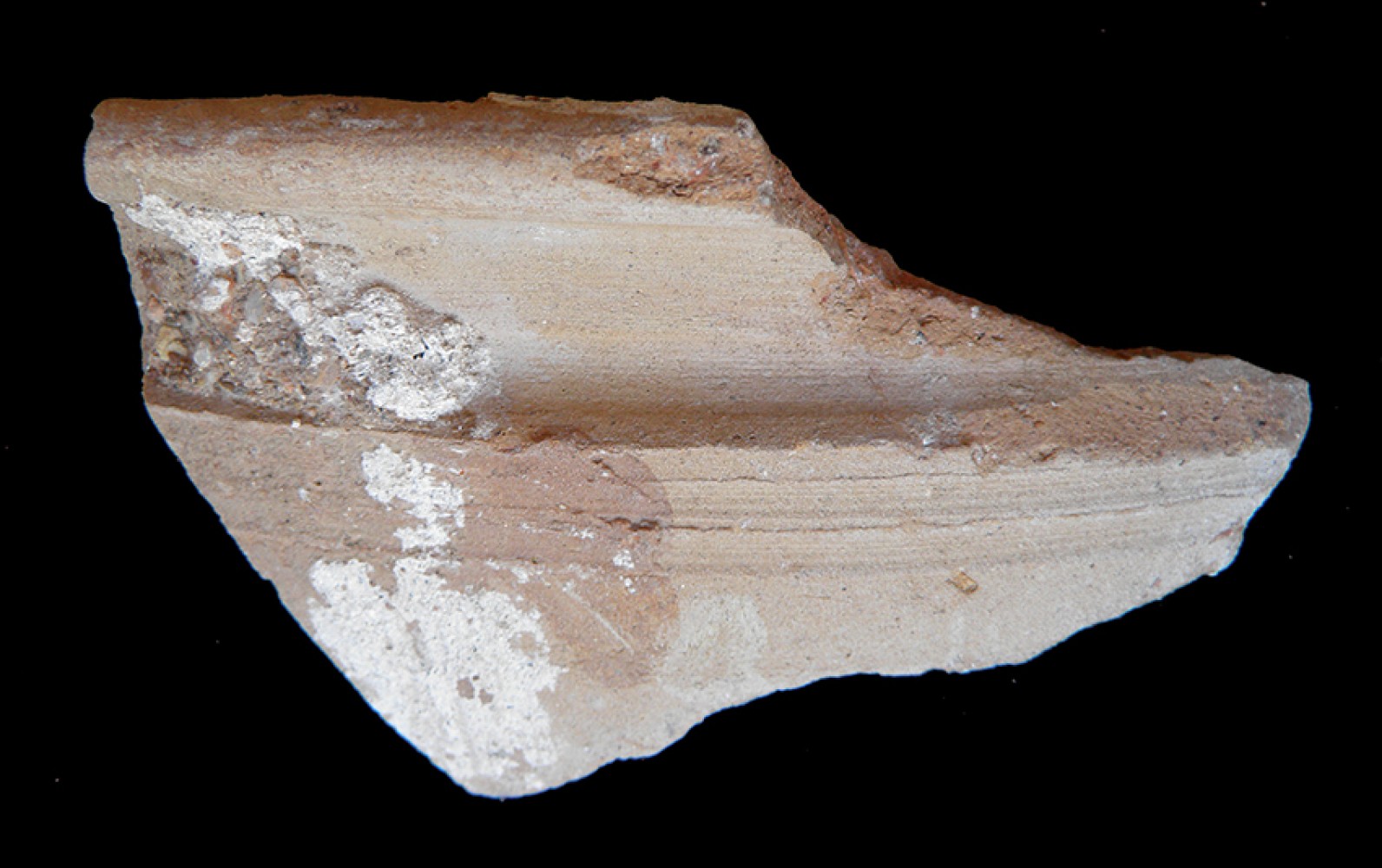 Pasta anaranjada con intrusiones. A torno y mano.