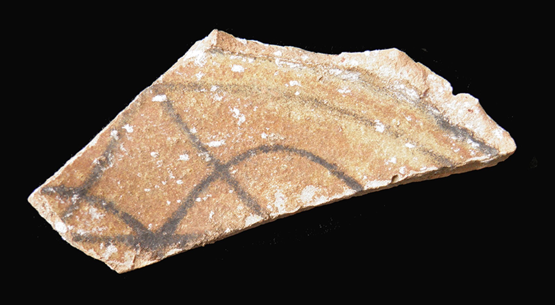 Vedrío verde melado en ambas caras con decoración fitomorfa de manganeso.