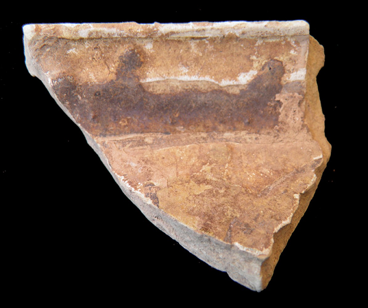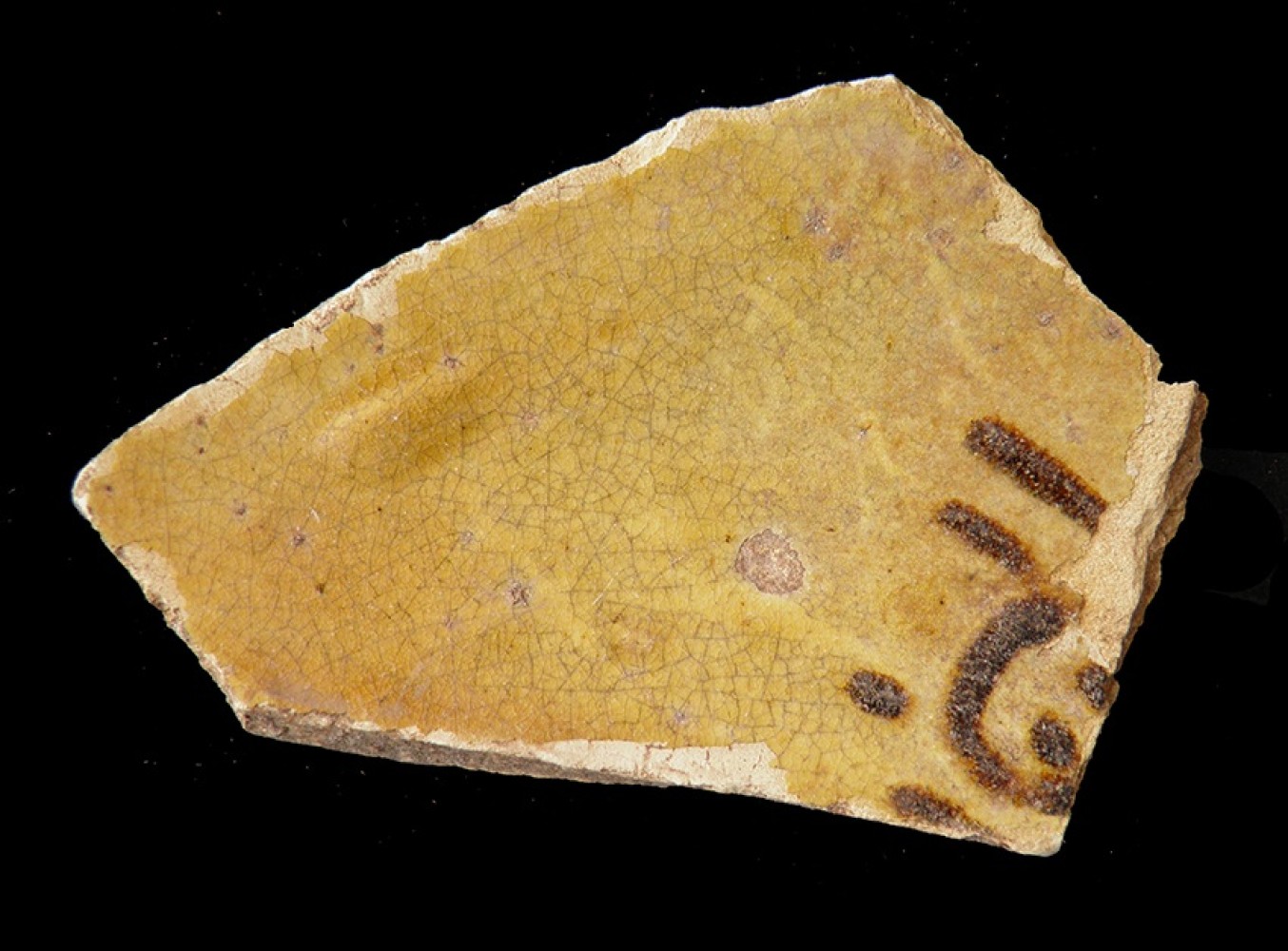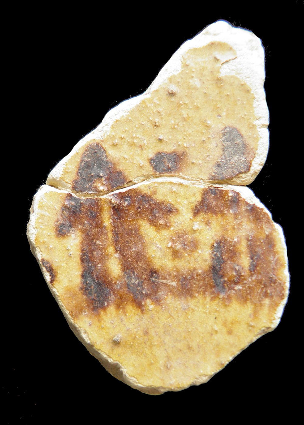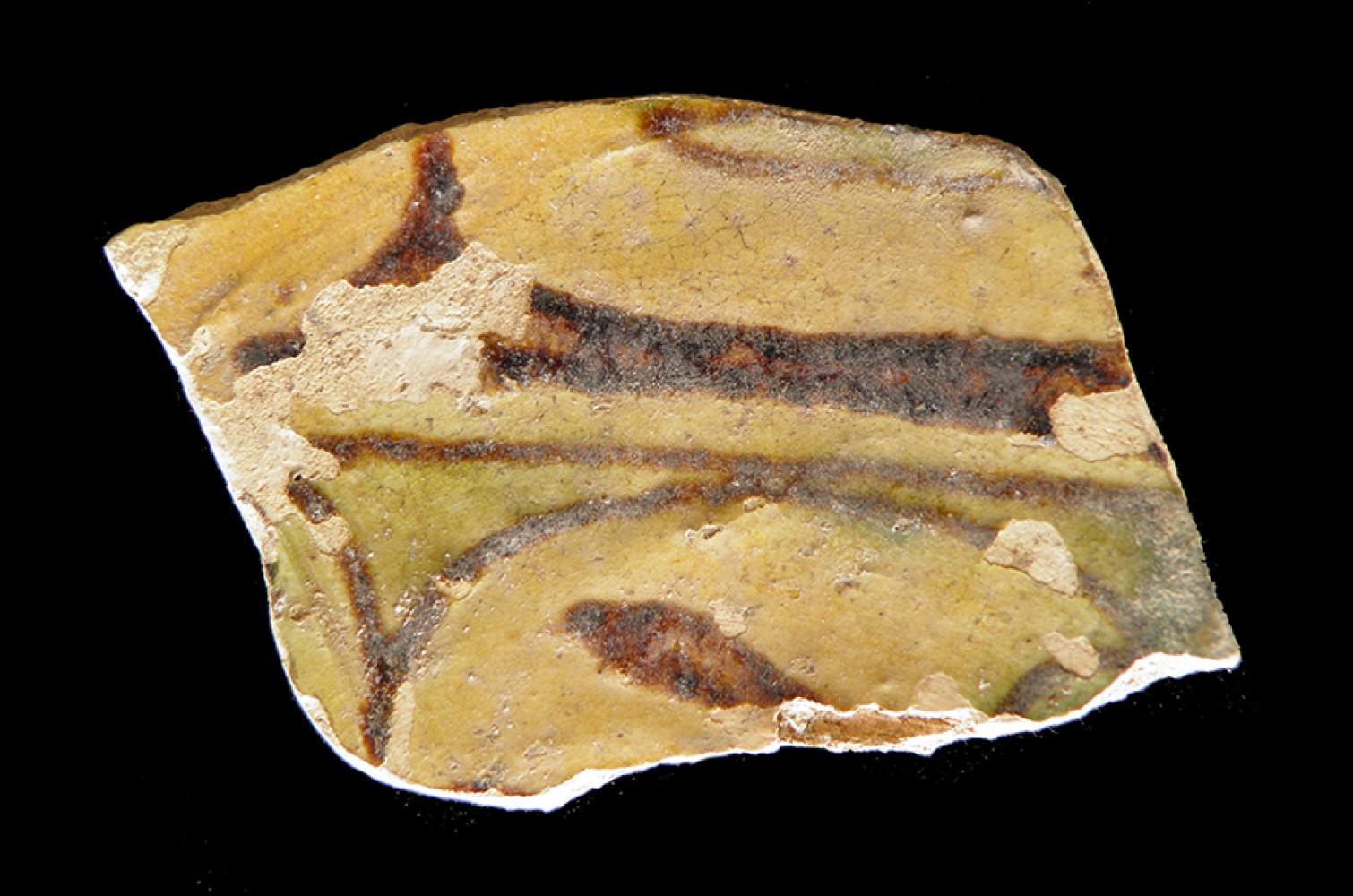 Vidriado verdoso en las dos caras y trazos de manganeso.