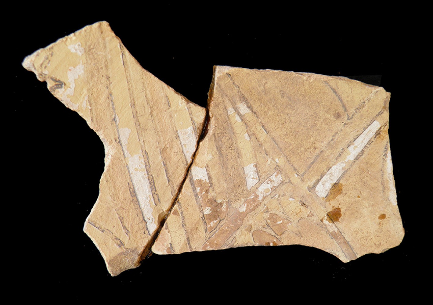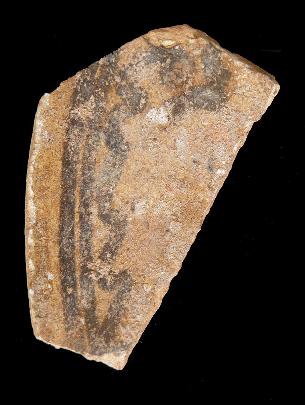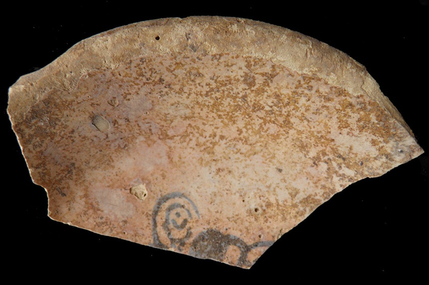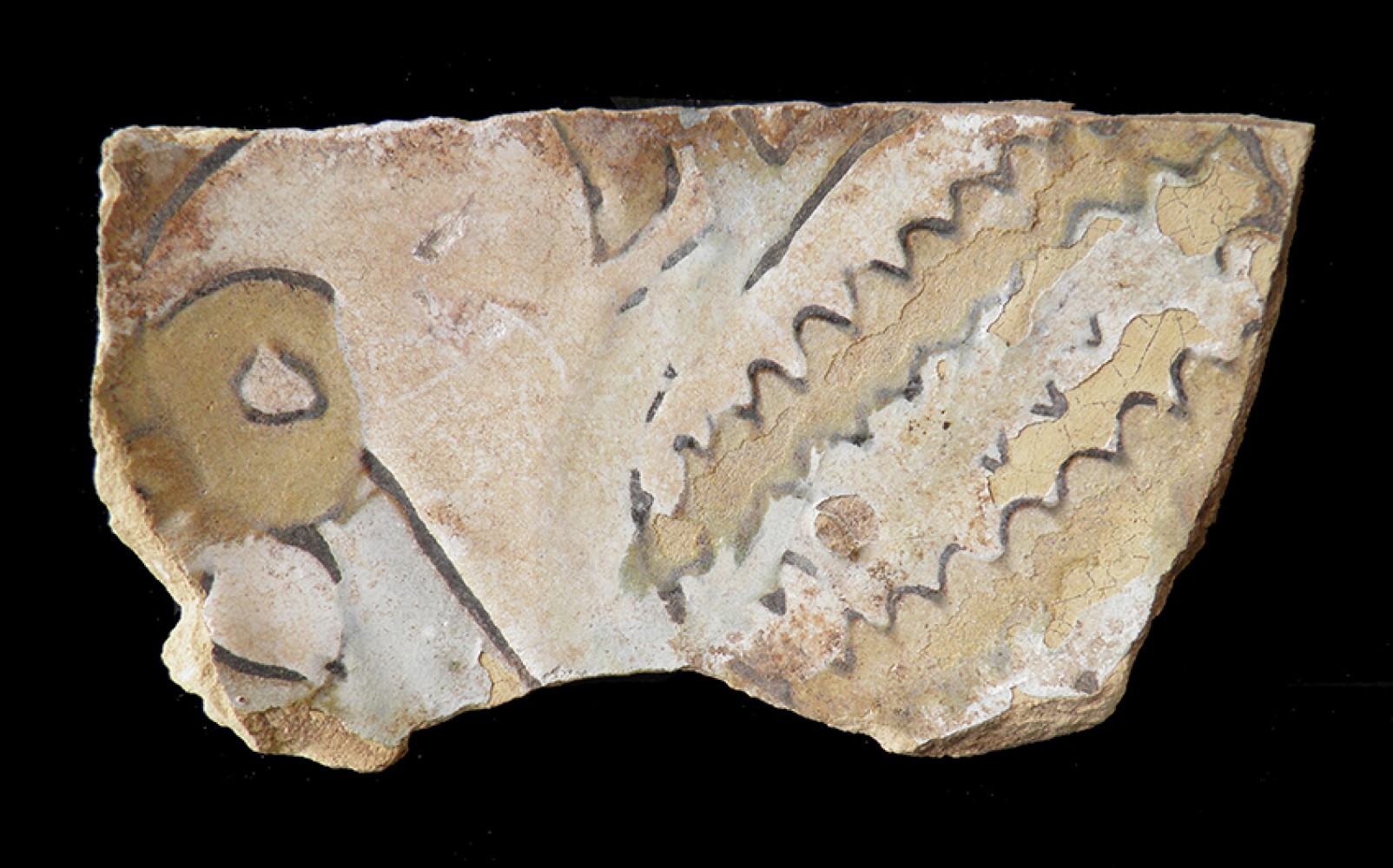 Vidriado verdoso en las dos caras y trazos de manganeso.