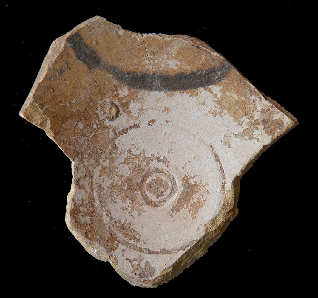 Ancho máximo del fragmento central: 9,92 cm.; Diámetro de pie: 9 cm.; Grueso: 1,2 cm.
