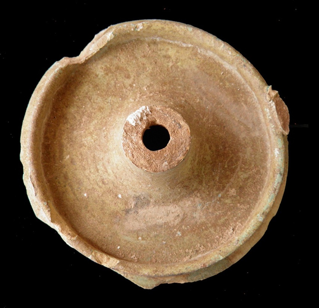 Cazoleta de candil de pie reutilizada como candil de cazoleta abierta.