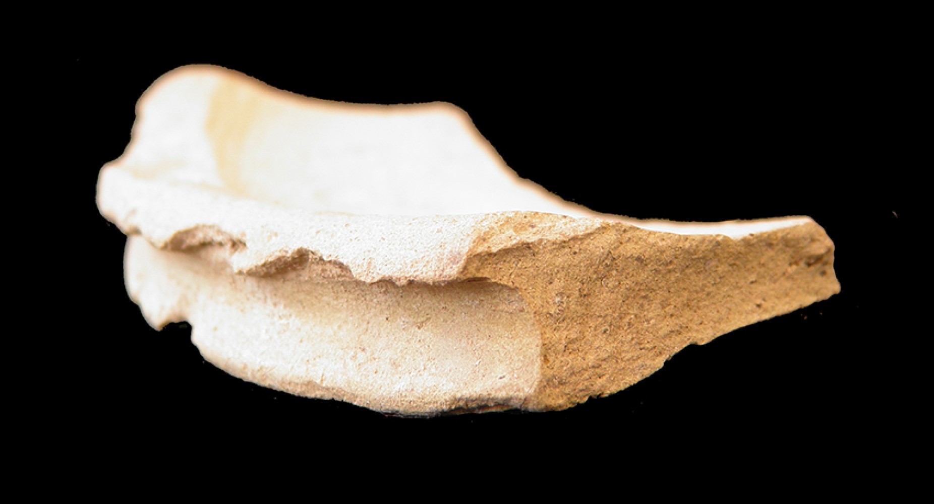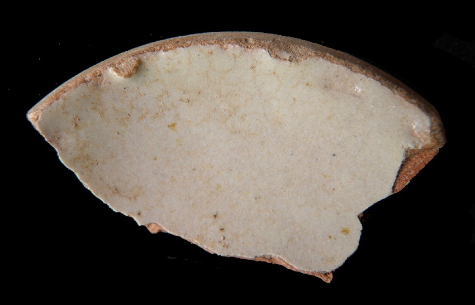 Vidriado blanco al interior, cubriendo la mitad del borde.