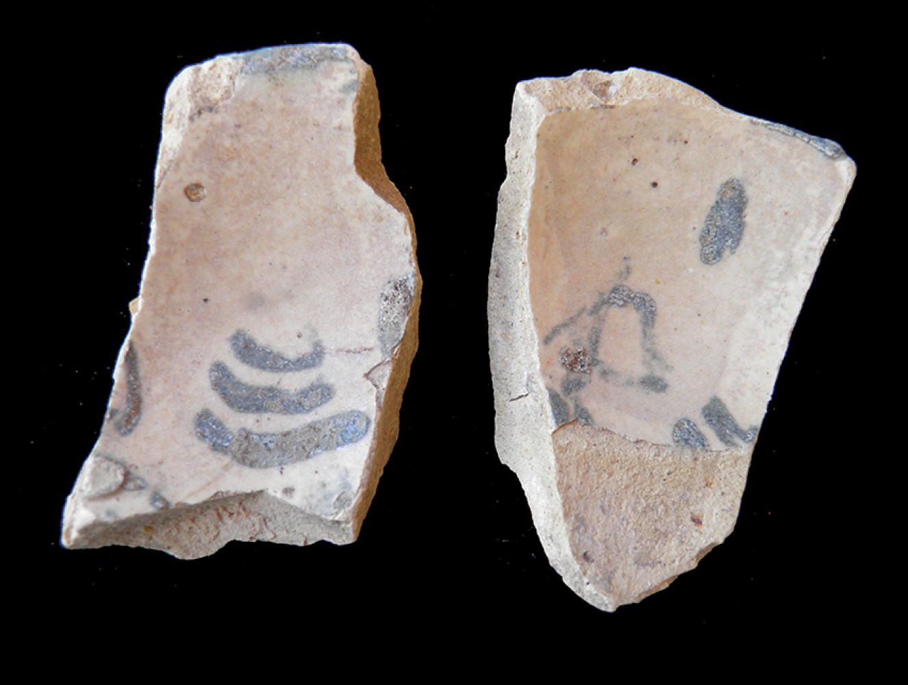 Vidriado blanco con motivos en azul cobalto.