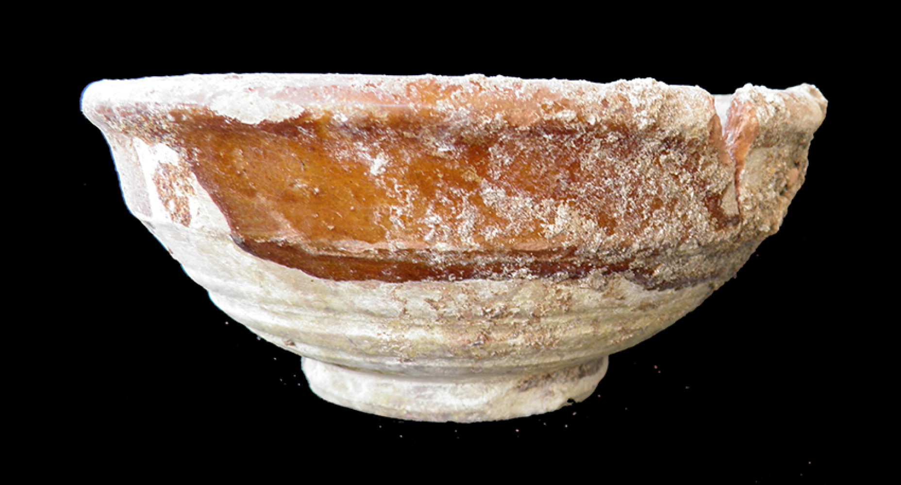 Pie anillado, cuerpo en forma de casquete esférico con borde exvasado y labio redondeado.