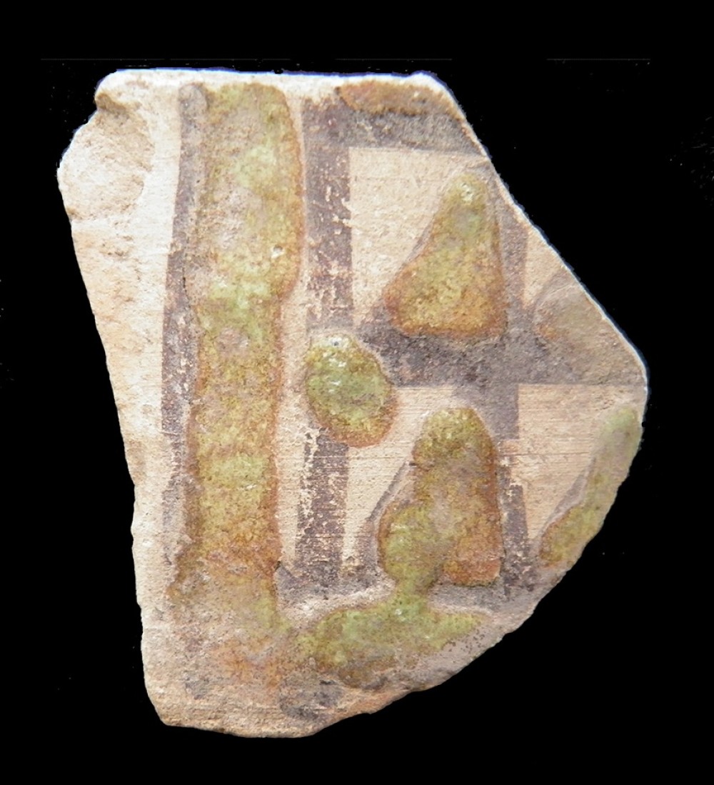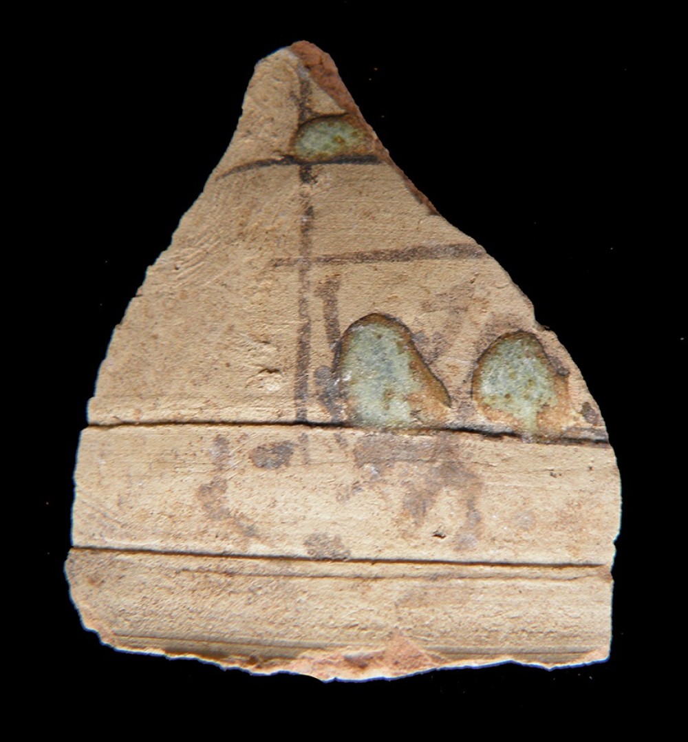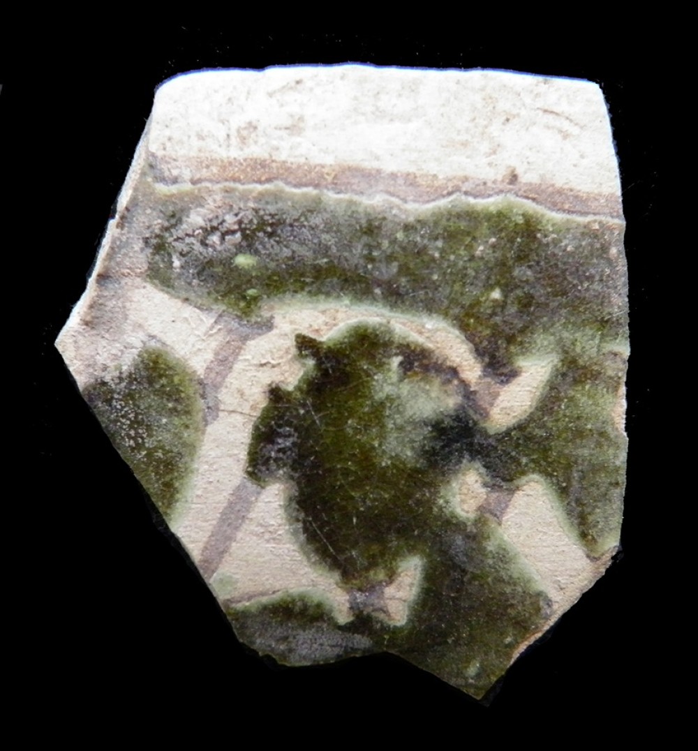 Cuerda seca parcial. Franjas paralelas de gotas de vidriado verde.