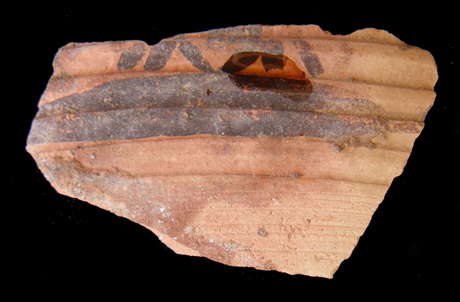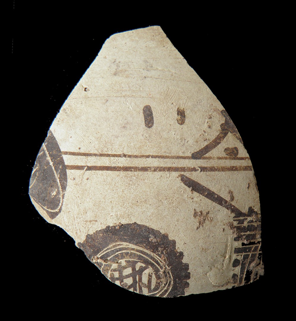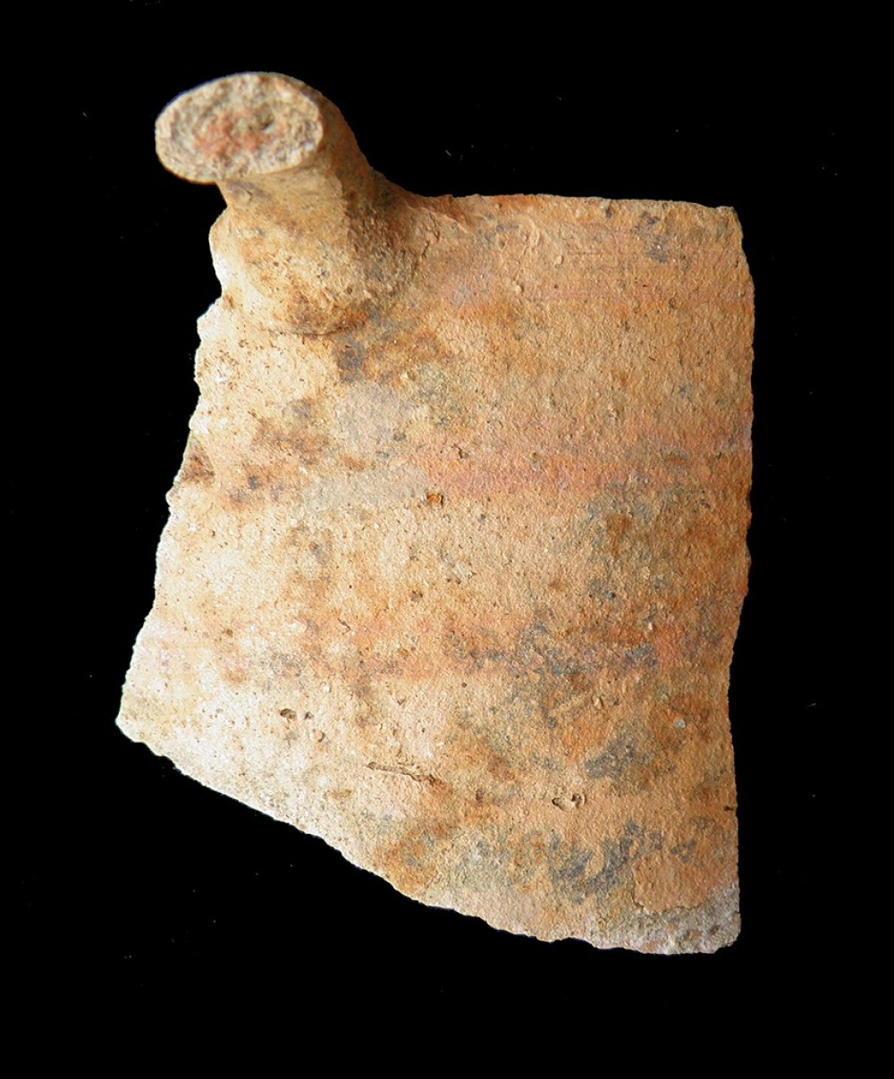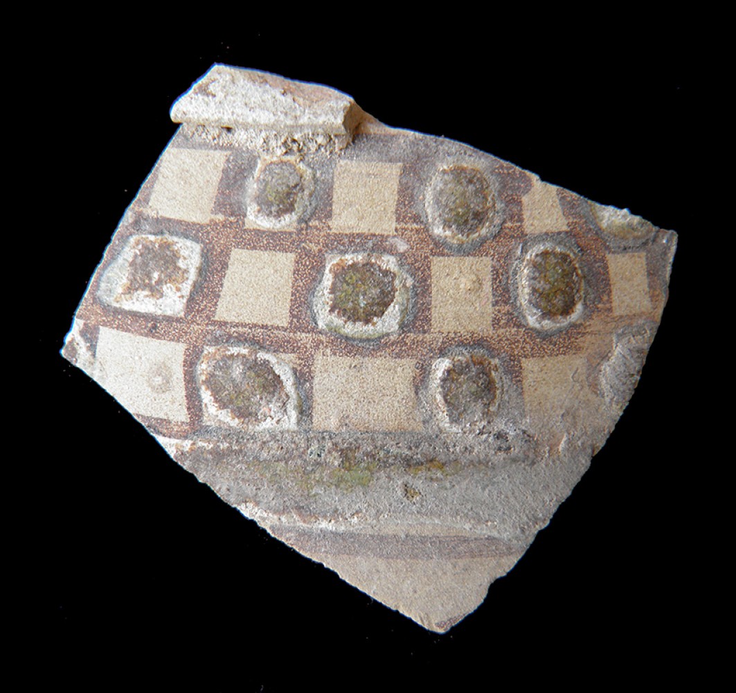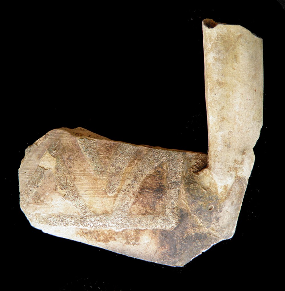 Fragmento mayor. Altura: 4 cm.; Anchura: 4,5 cm.; Grueso: 0,2 cm.