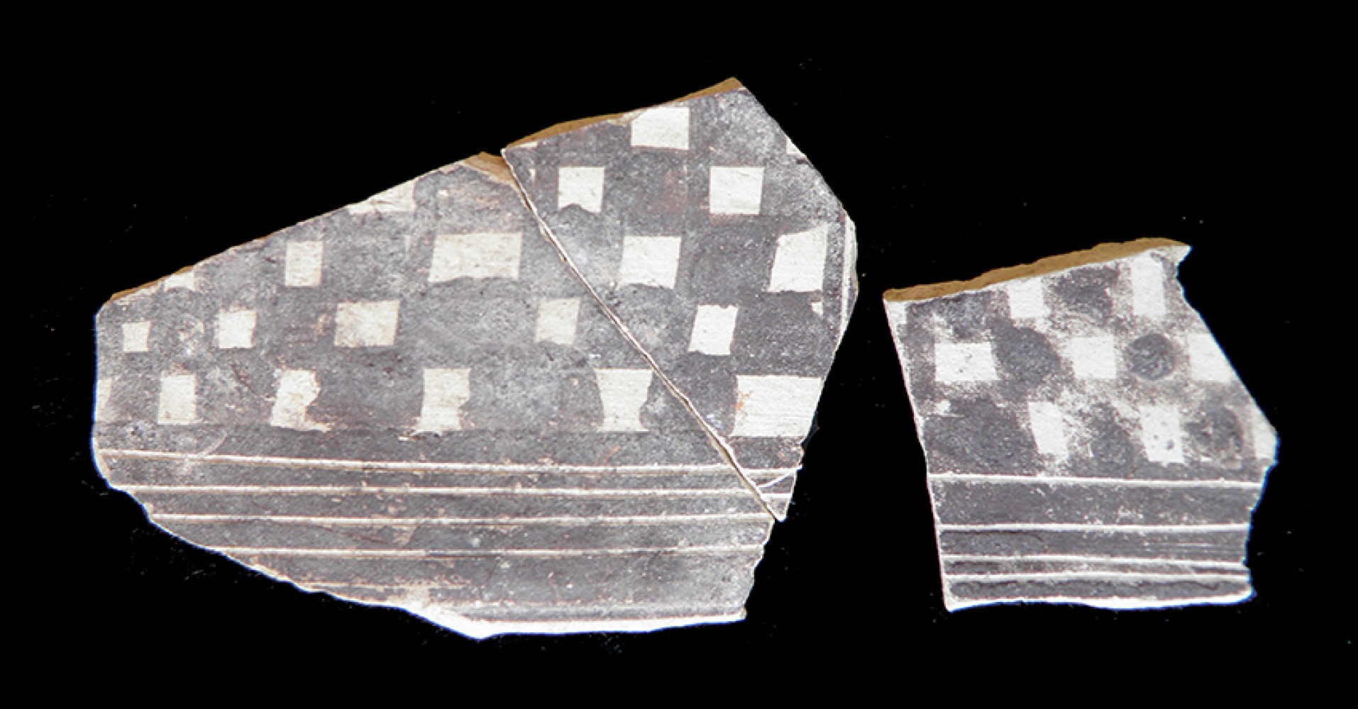 Fragmento mayor: Altura: 3 cm.; Anchura: 4,2 cm.; Grueso medio: 0,4 cm.