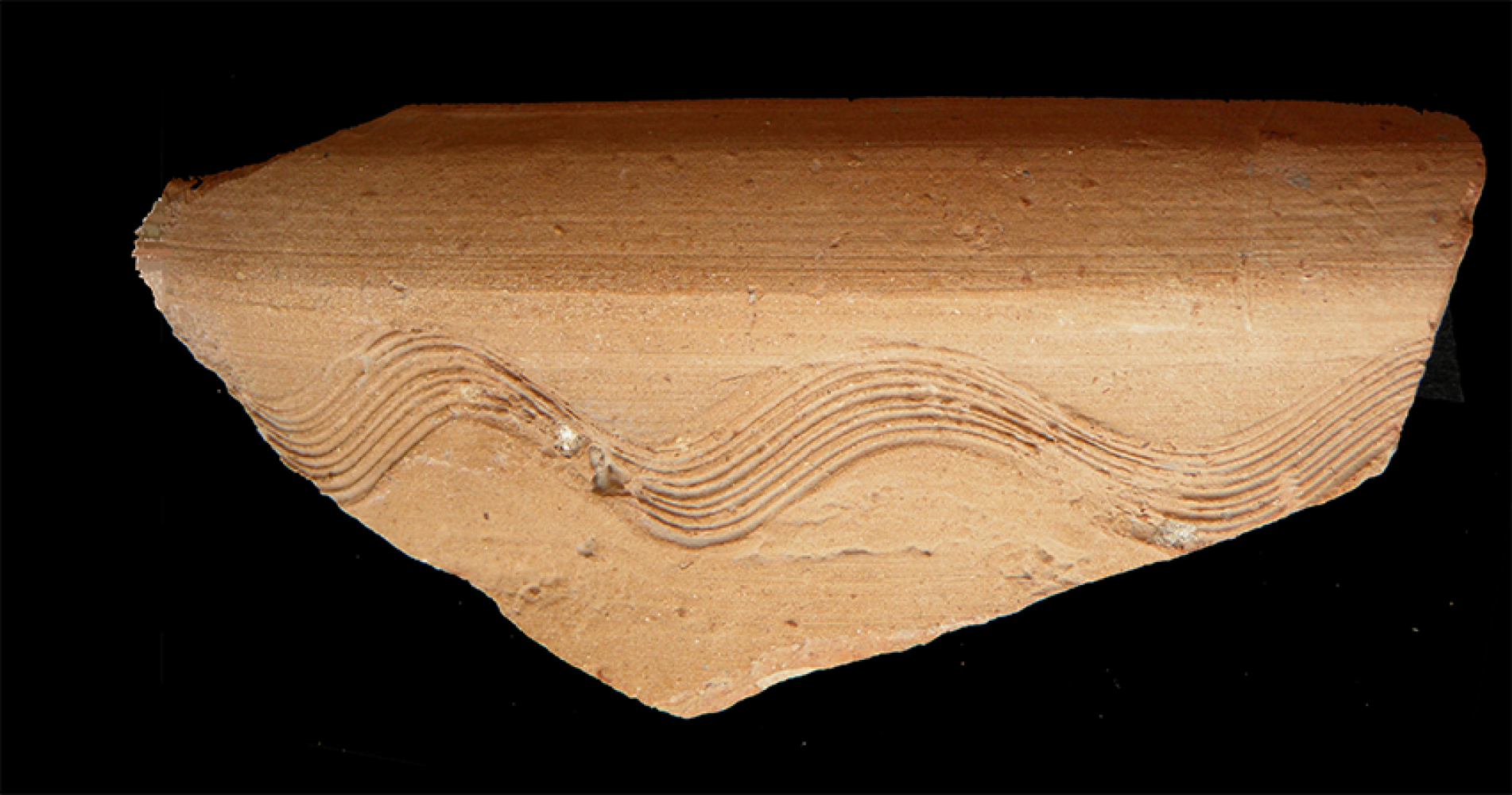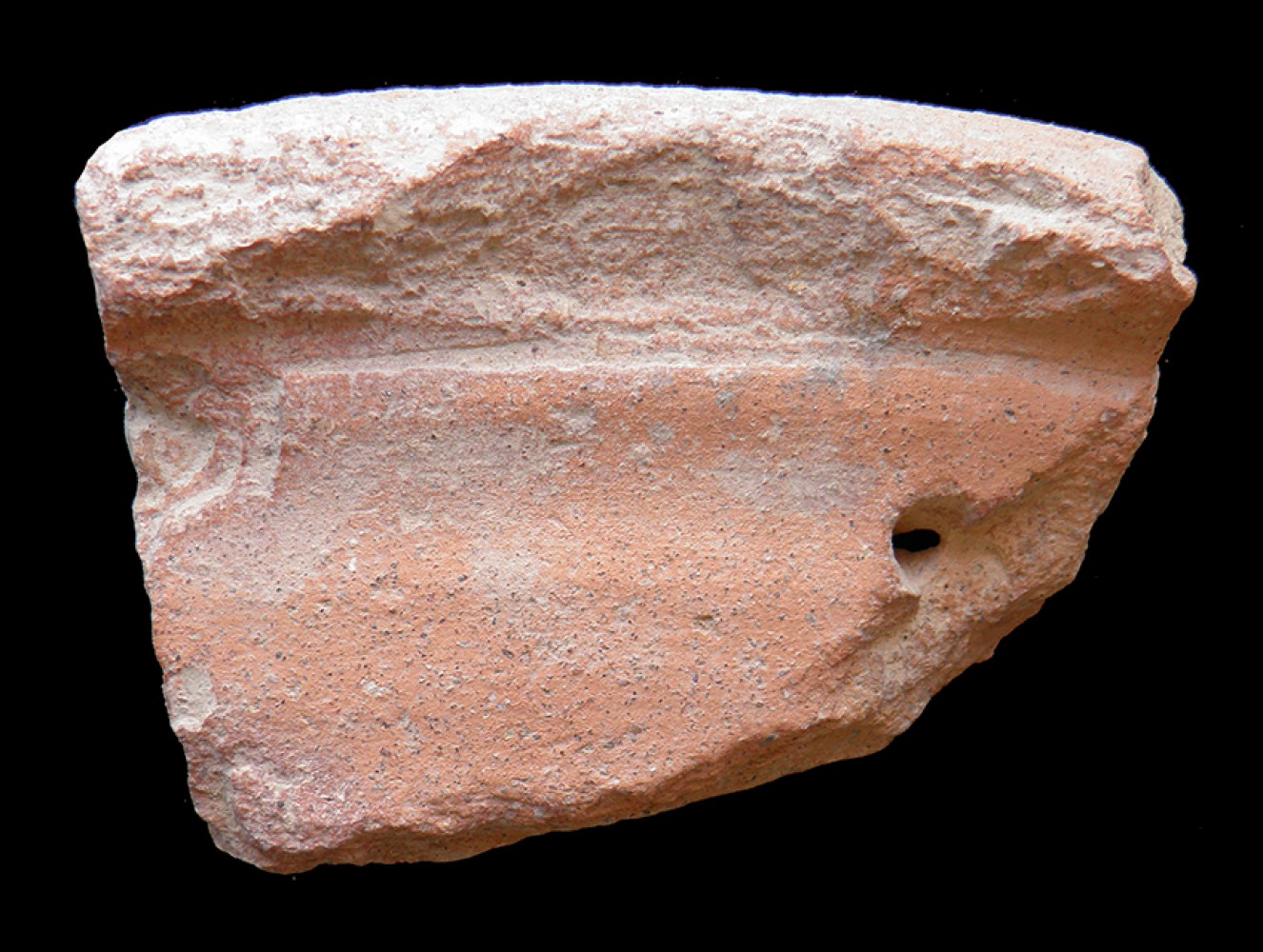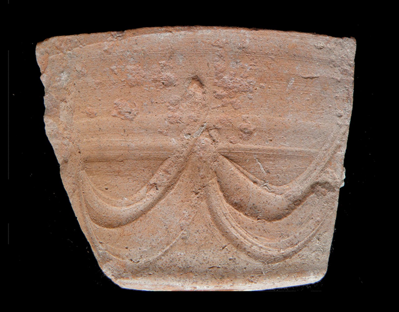 Banda estrecha incisa "a peine", formando meandros desiguales bajo el borde exterior.