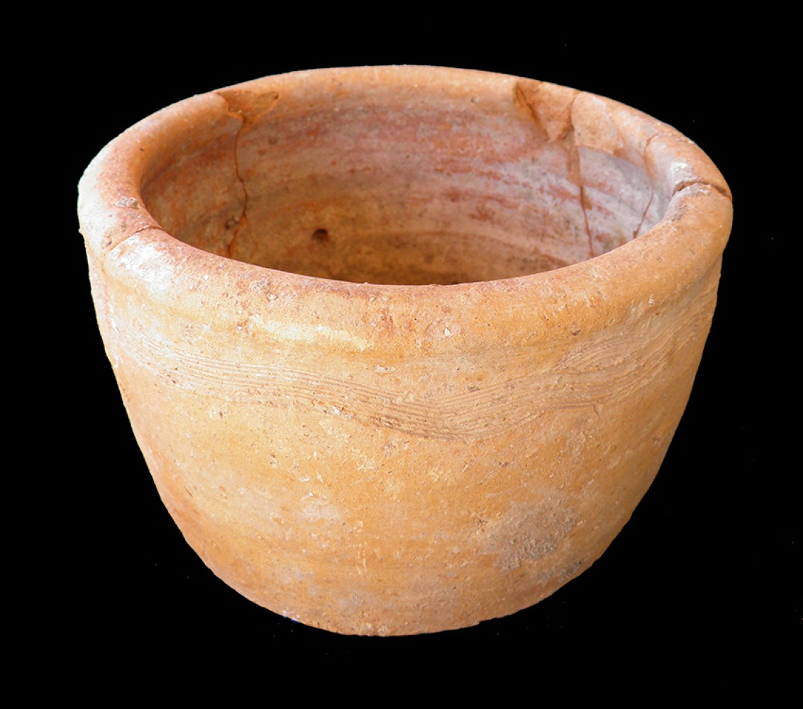 Pasta anaranjada con intrusiones micáceas. A torno y mano.