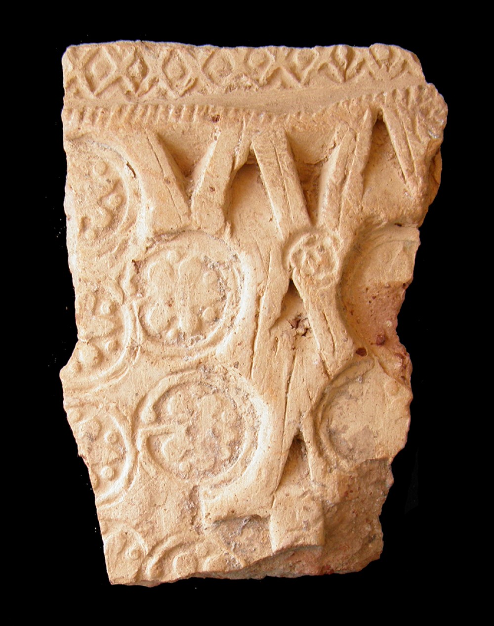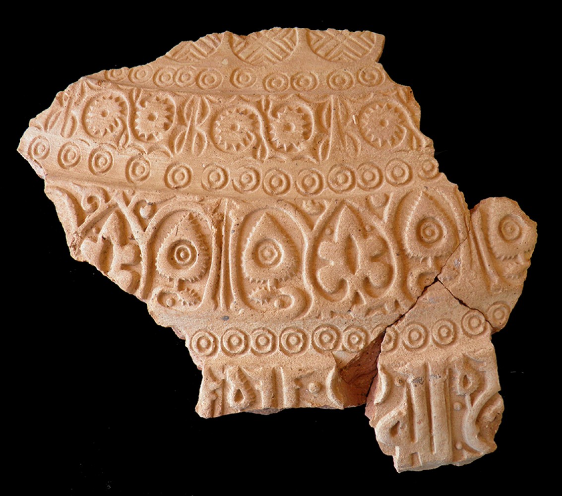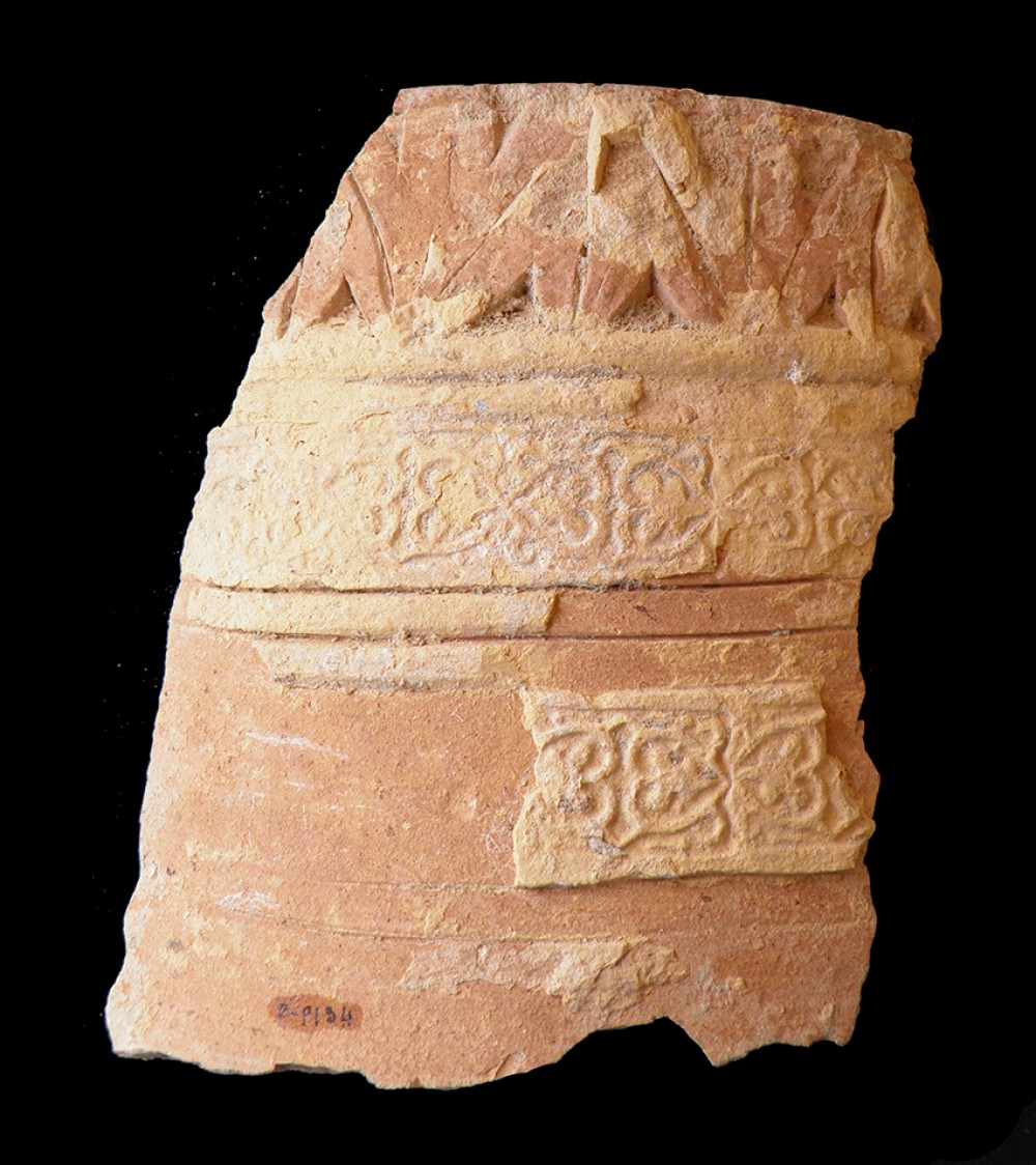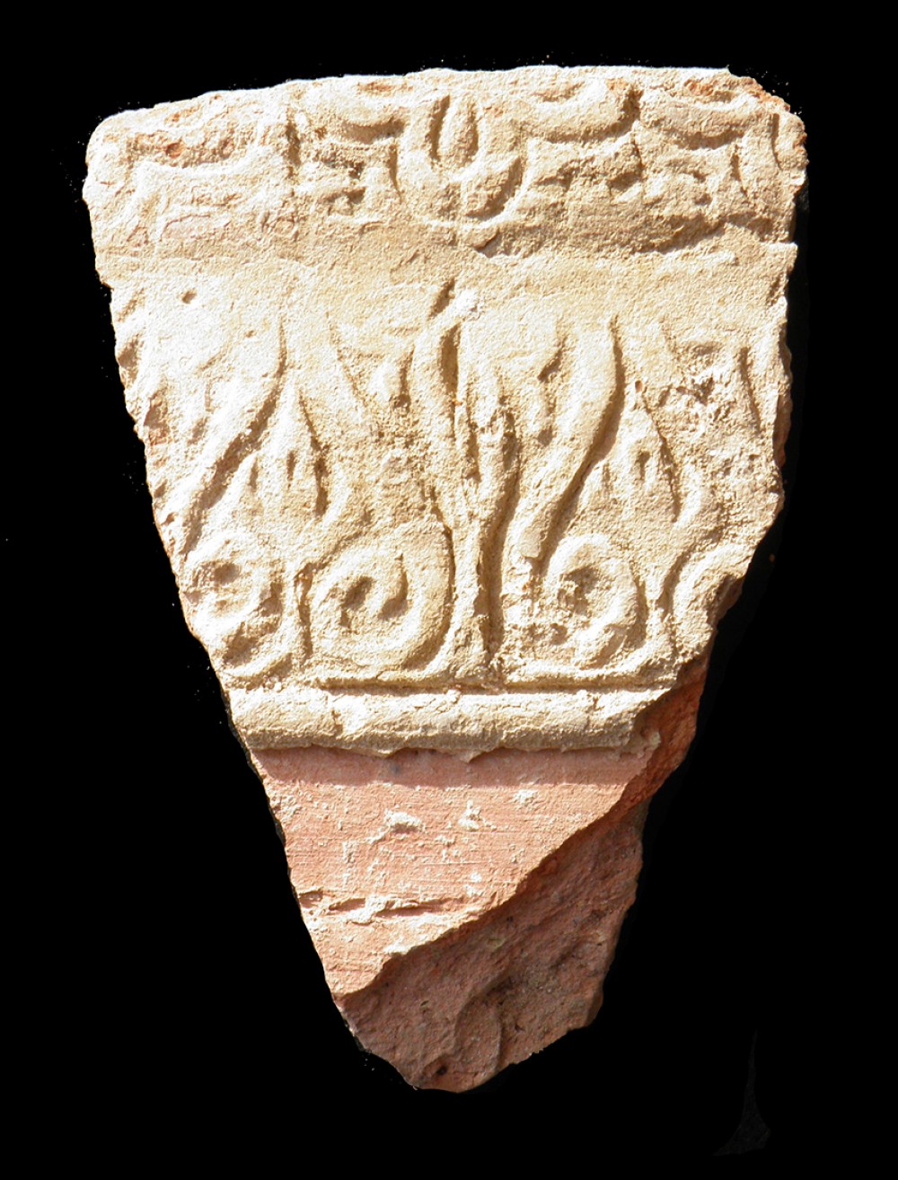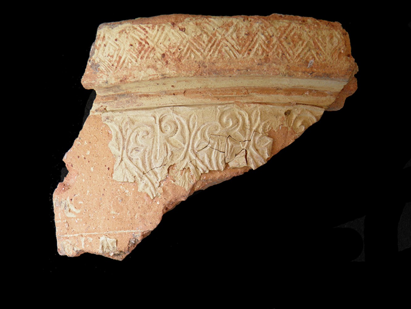 Estampillado fitomorfo e inciso en la base de pasta anaranjada.