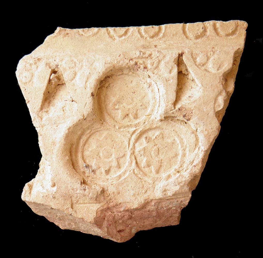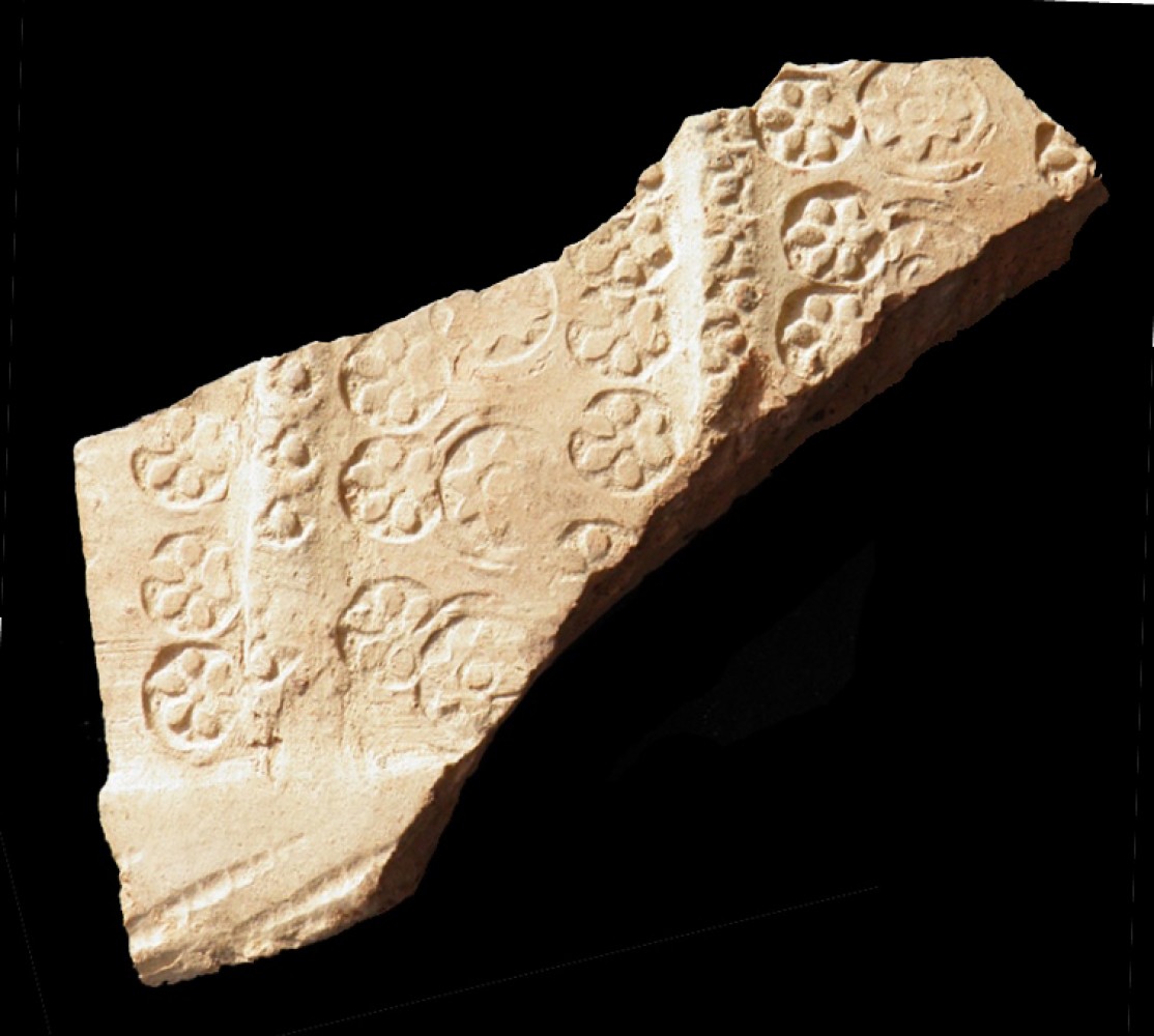 Decoración arquitectónica y estampillas con la estrella de Davis y fitomorfa.