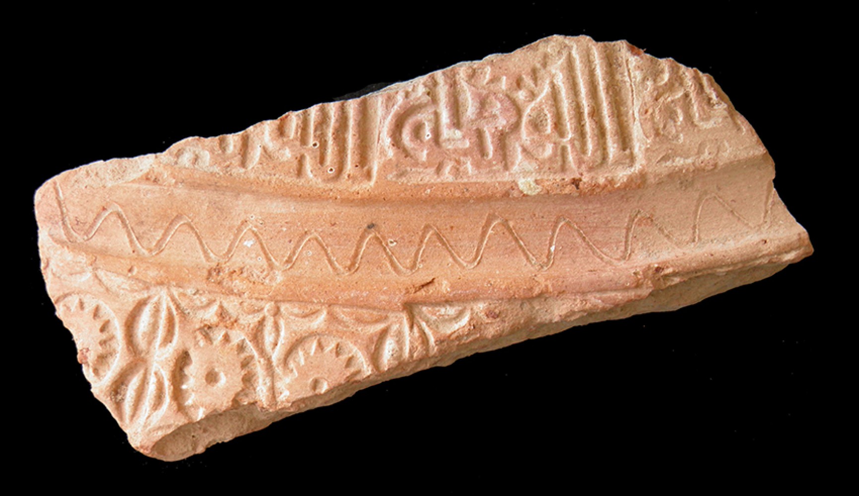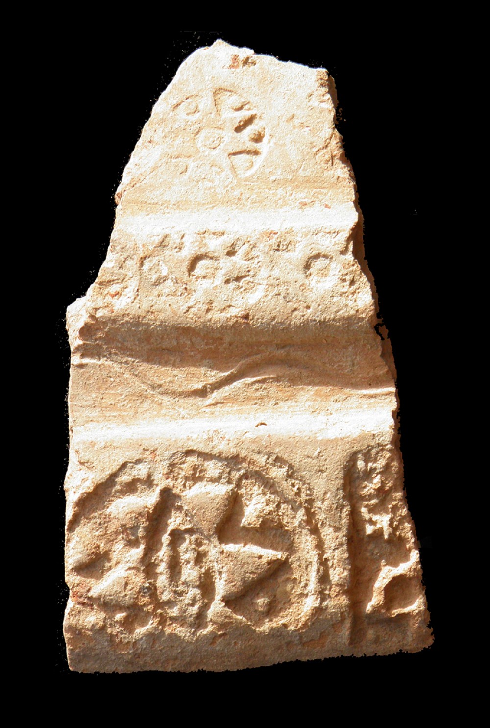Estampillado fitomorfo y epigráfico y una línea incisa ondulada.