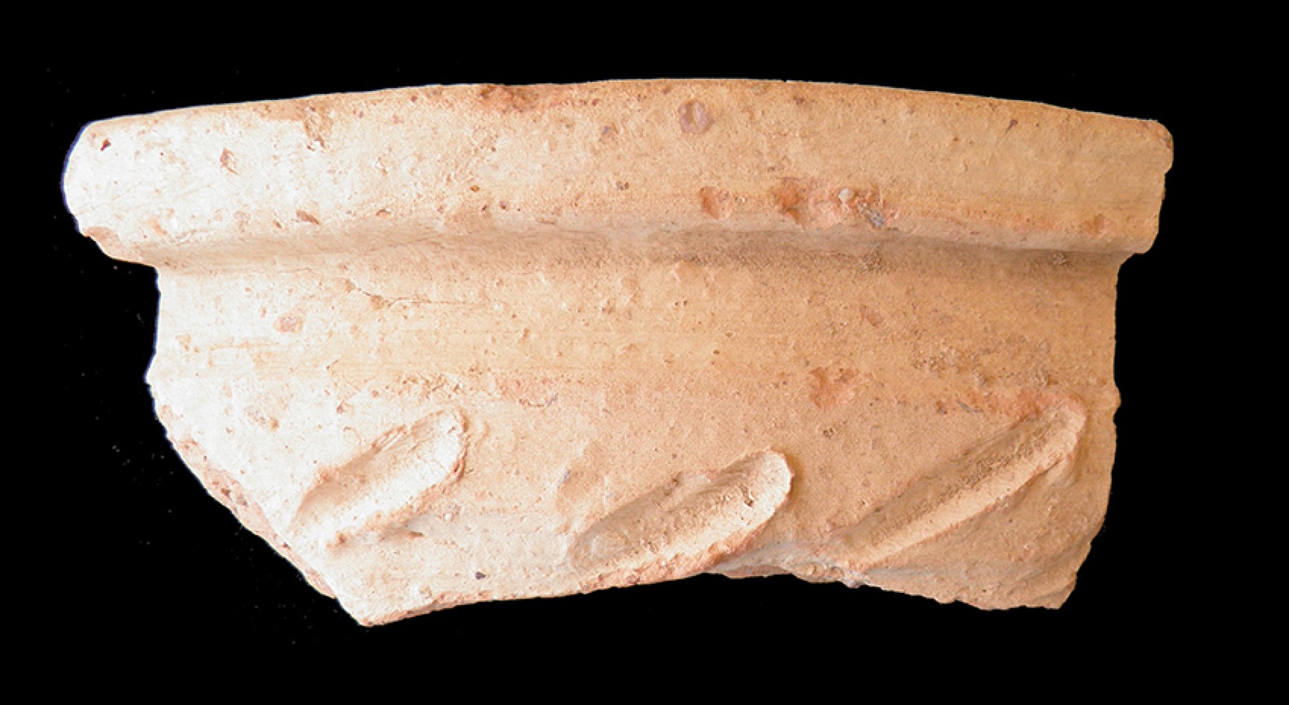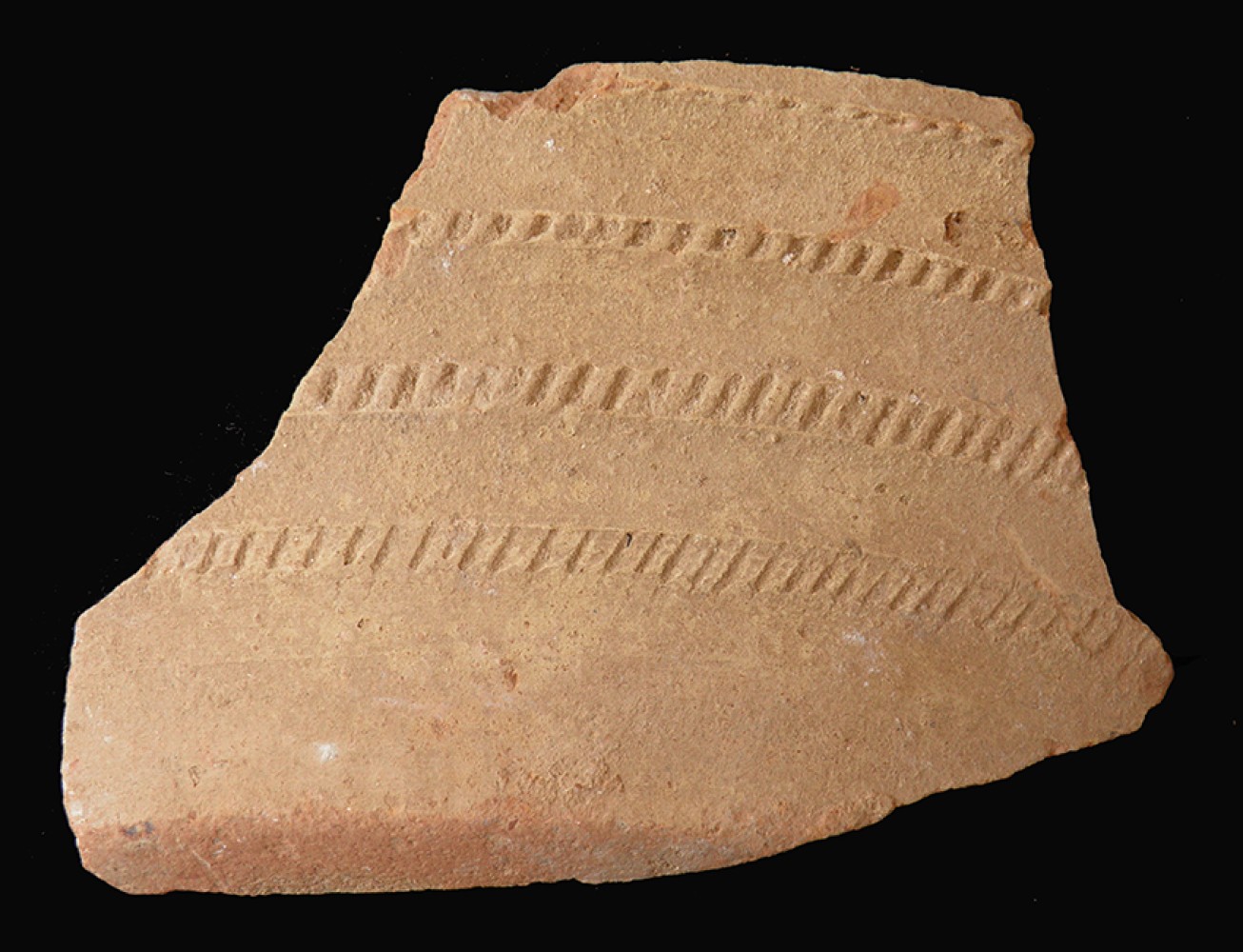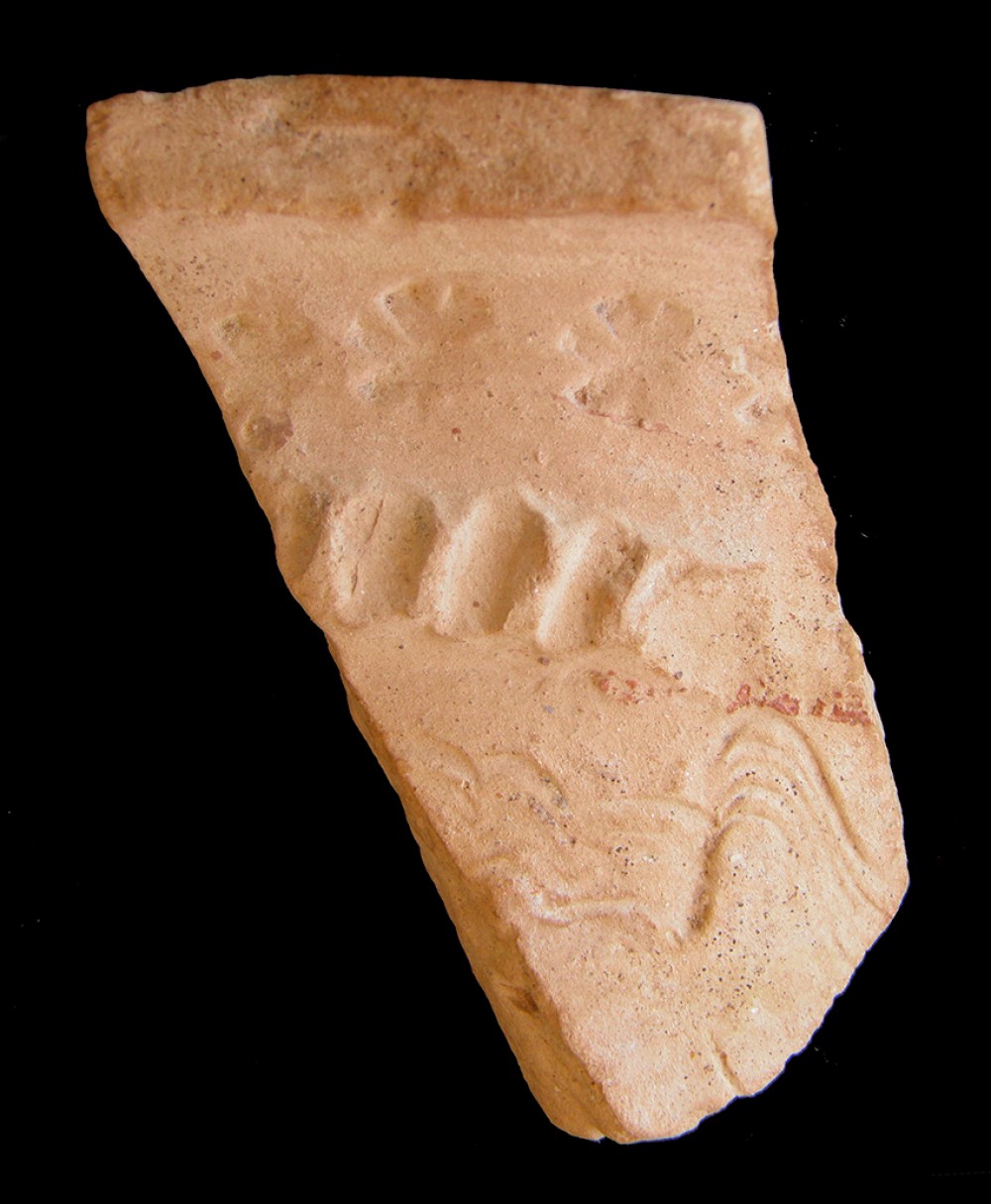 Cordón horizontal sobre el que se efectúan impresiones paralelas, estampillado e inciso ondulado "A peine"