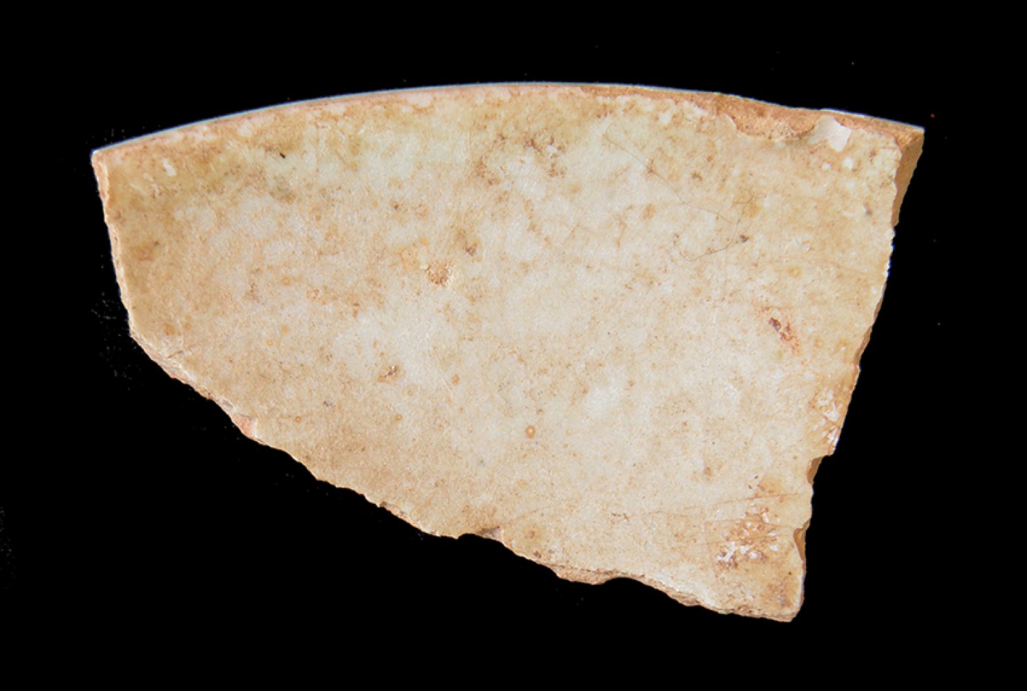 Vidriado blanco al interior, cubriendo la mitad del borde.