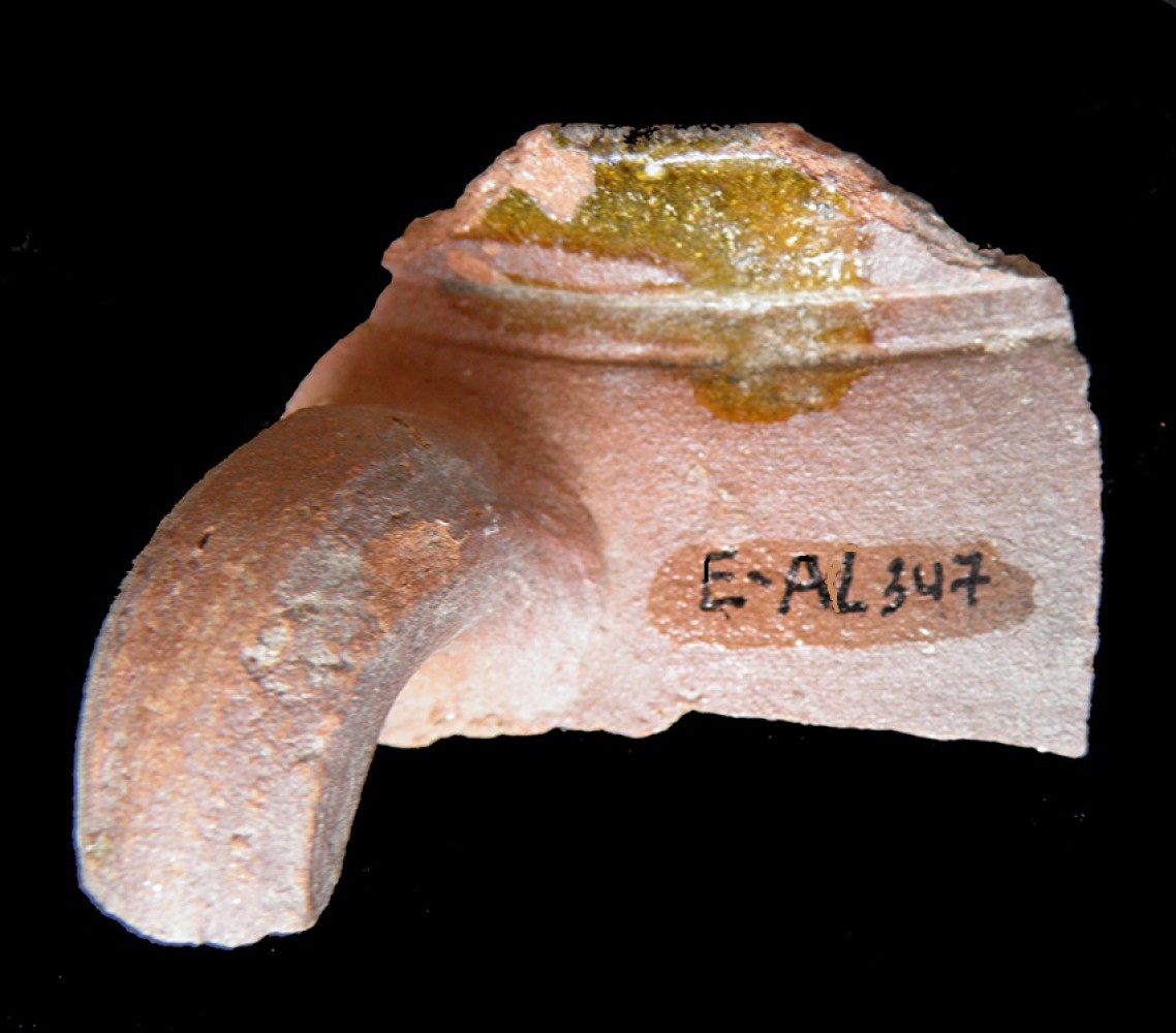 Cuello corto y labio redondeado. Asa ovalada.