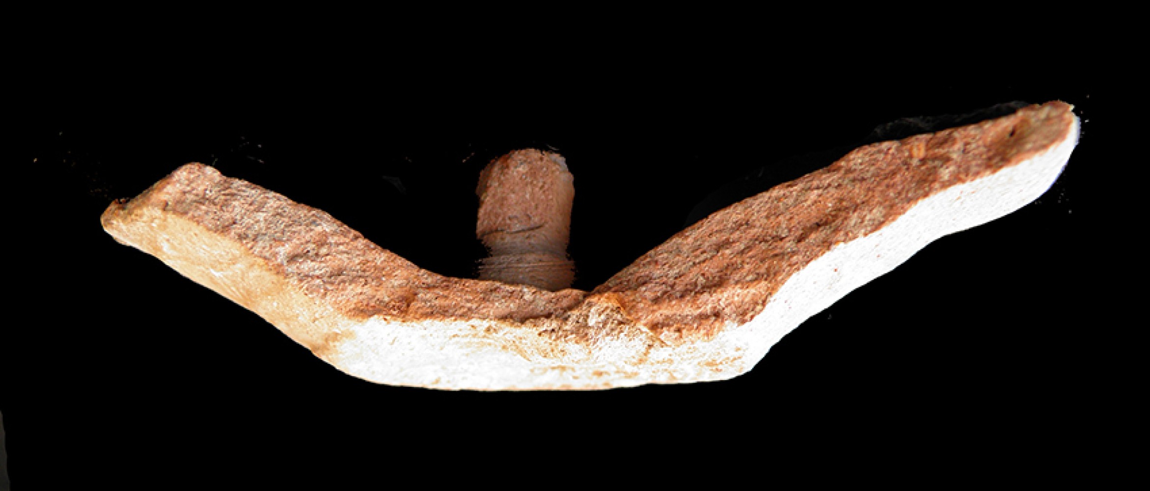 Pedúnculo central. Base plana irregula y borde redondeado.