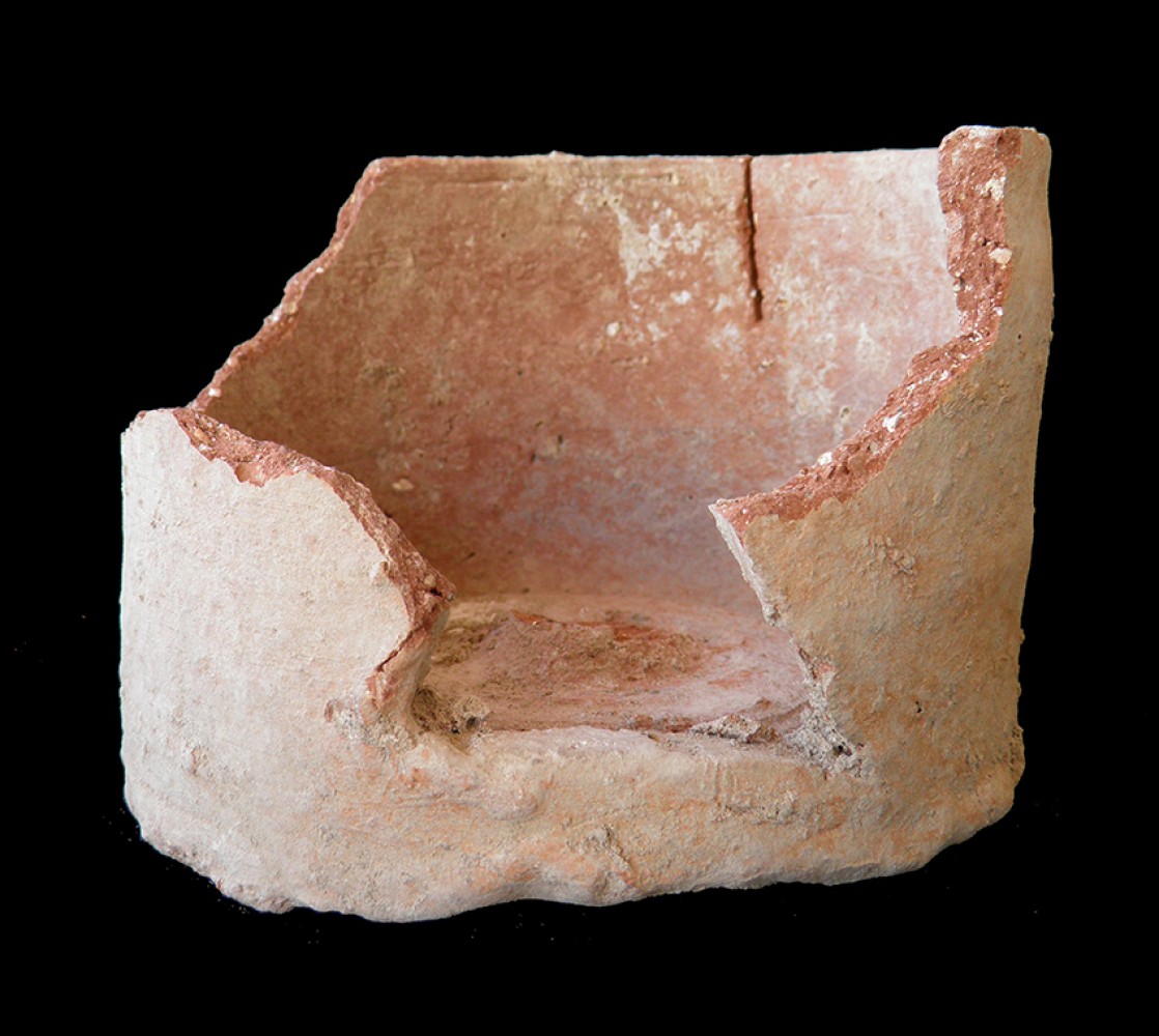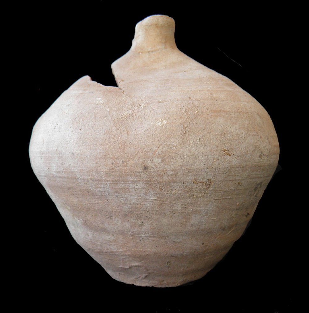 Pasta rojiza, compacta con caliza y mica. Torno y mano.